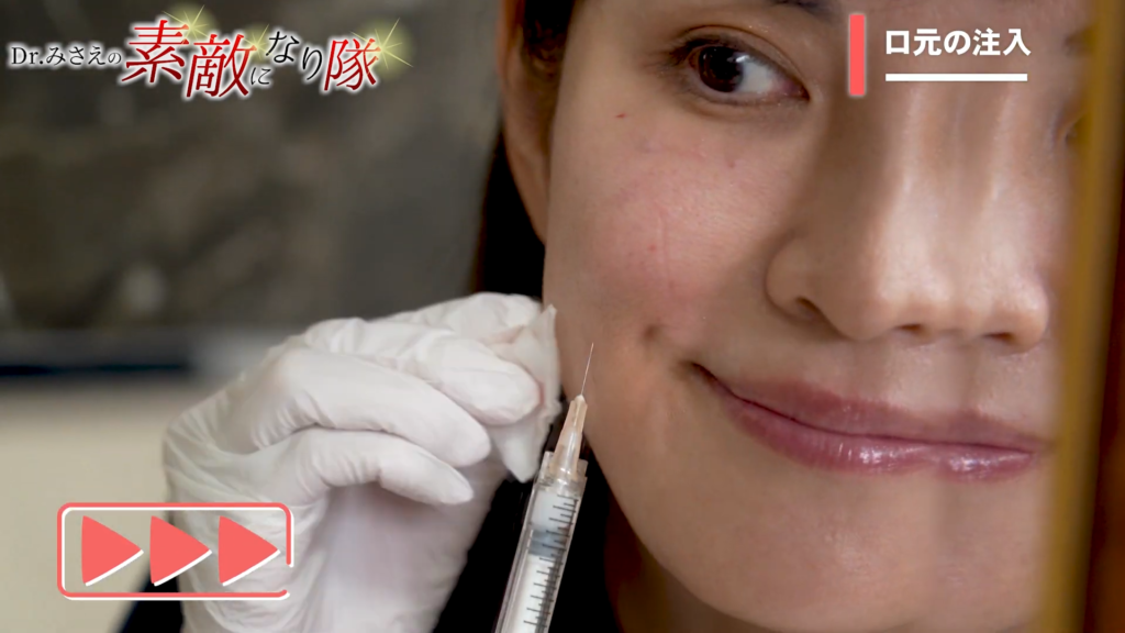 施術前は麻酔を行い、さらに痛み対策として冷却も併用。動画内では「笑った時に出るシワ」など、表情を作って注入位置を確認する重要性にも触れられています。