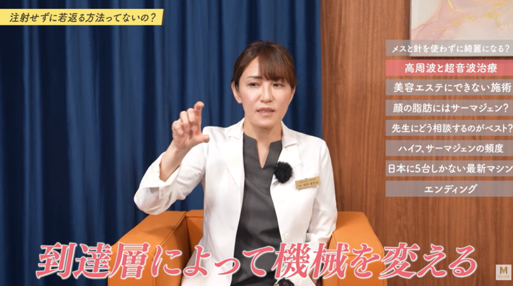 たとえば「真皮層を狙う機器」もあれば、「筋膜層を狙う機器」もあります。
