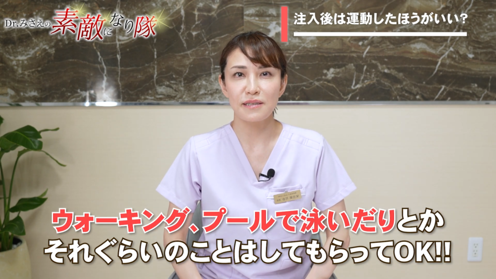 また、脂肪溶解注射後は「激しい運動は不要」でも、ウォーキングや軽い運動で代謝を上げる方が効果の後押しになりやすい、という内容も語られています。