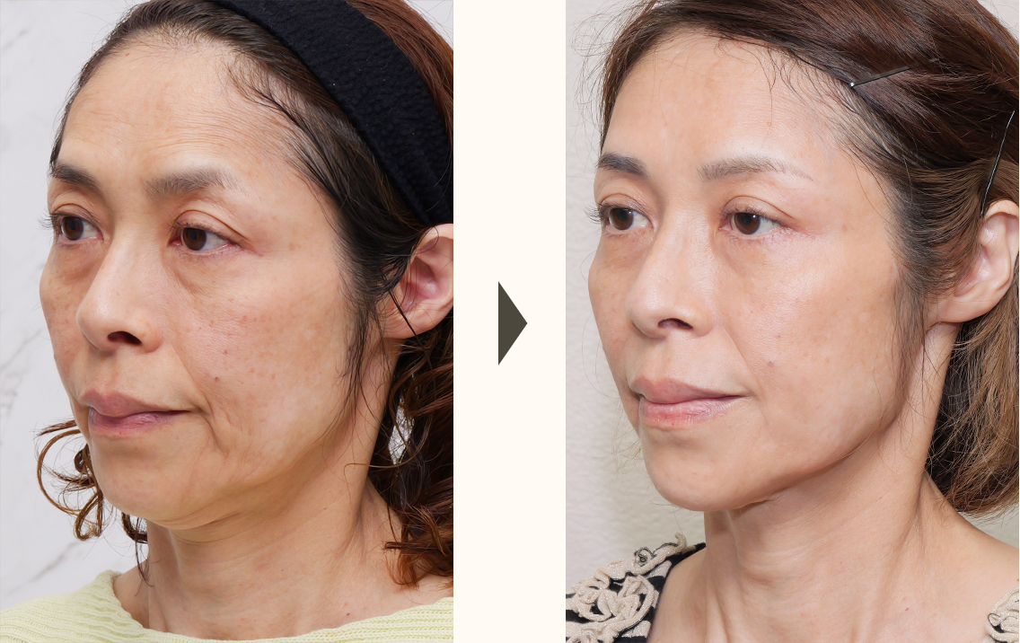シミ・シワ・たるみに悩む50代女性の施術事例:メスを使わない複数施術の組み合わせによるアプローチ