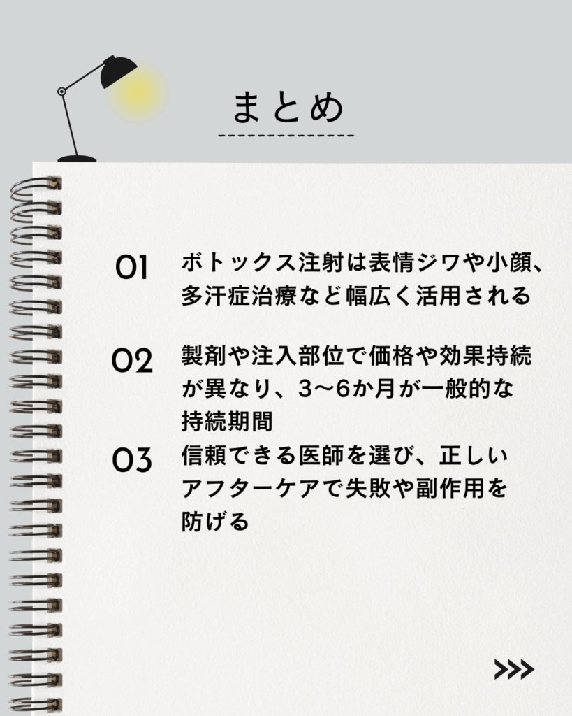 (関連記事「ボトックス注射のリスクと注意点:失敗しないための完全ガイド」はこちら)