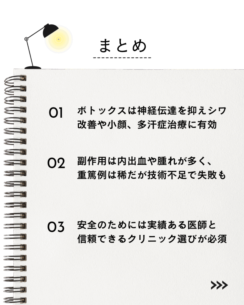 シワの改善や小顔効果、多汗症治療など、さまざまな悩みに効果が期待できる一方で、「ボトックスは危険」「副作用が怖い」といった不安の声があるのも事実です。