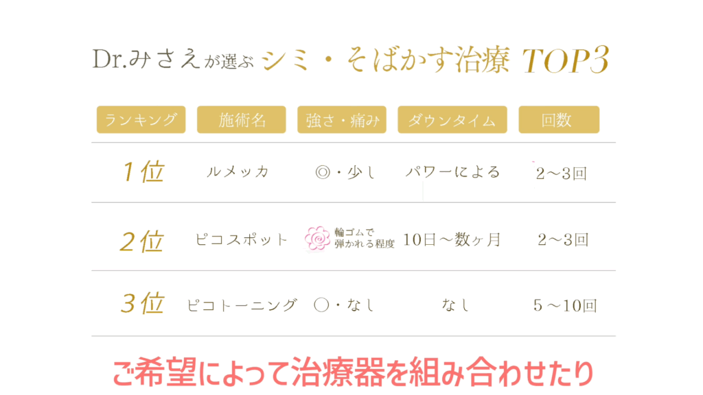 今日は、おすすめのシミ治療トップ3を発表していきます。