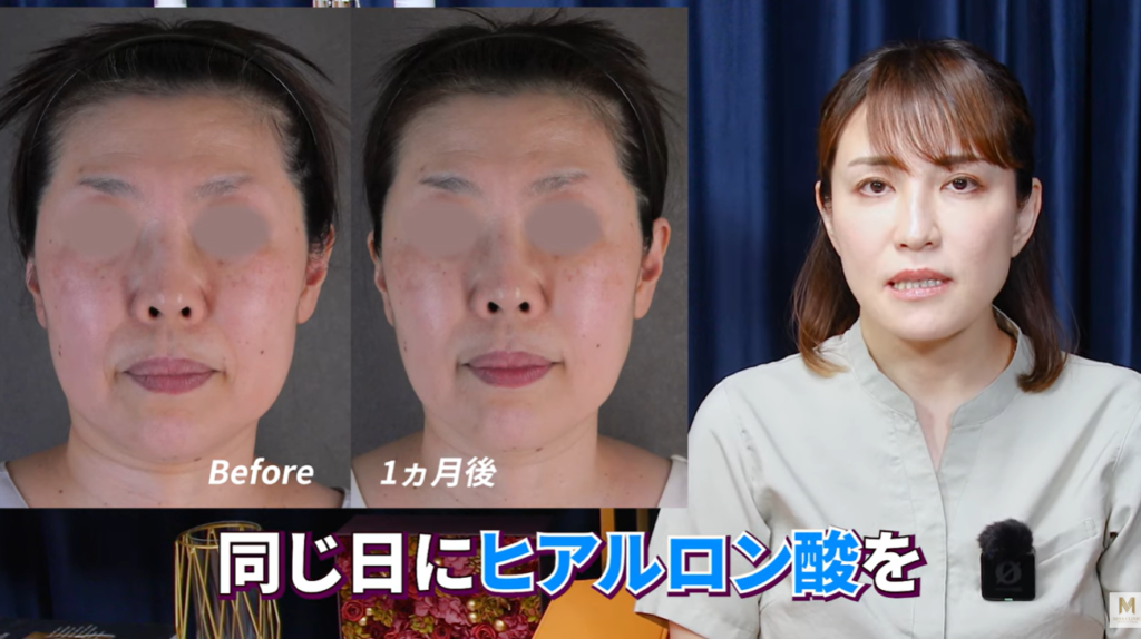 ある50代の患者では、ハイフ施術と同日にヒアルロン酸を1本注入しました。