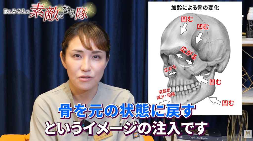 つまり、骨のボリュームを回復させることでリフトアップ効果を出す施術であり、皮膚そのものを若返らせているわけではありません。