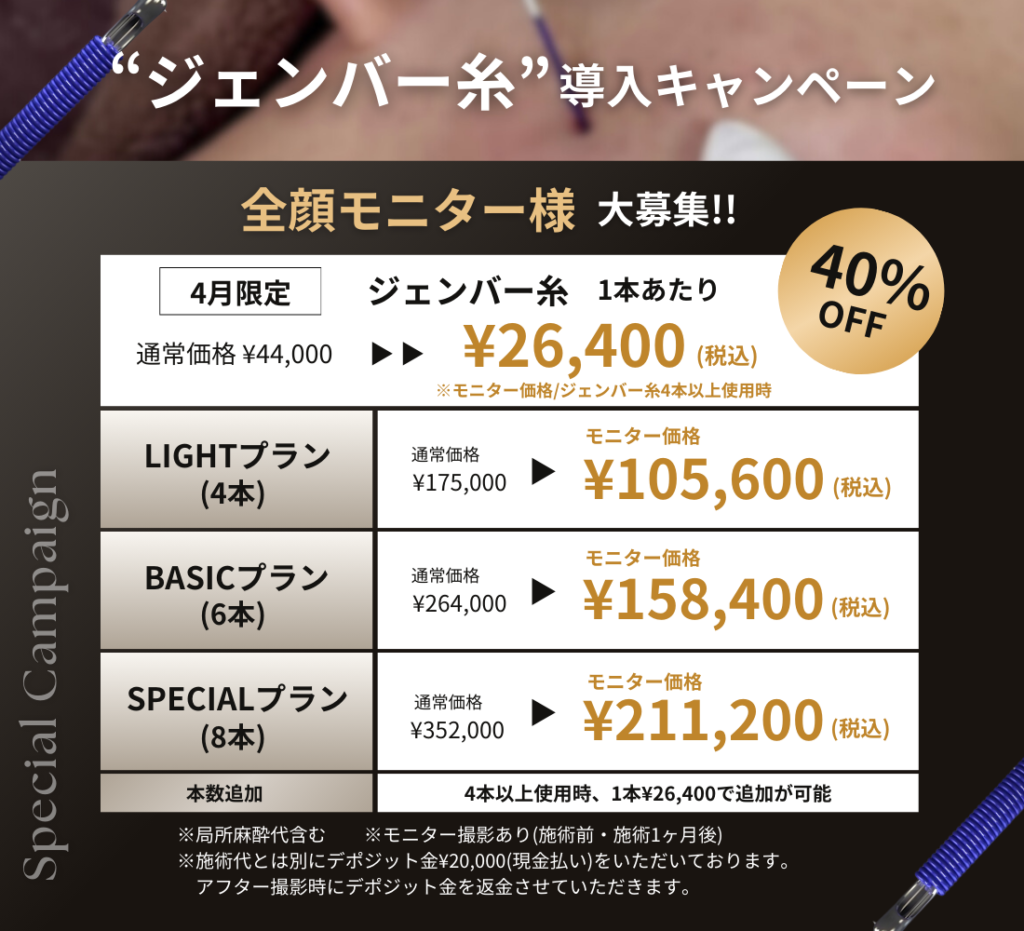 ※施術代とは別にデポジット金¥20,000(現金のみ) をいただいております。