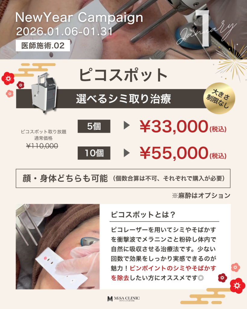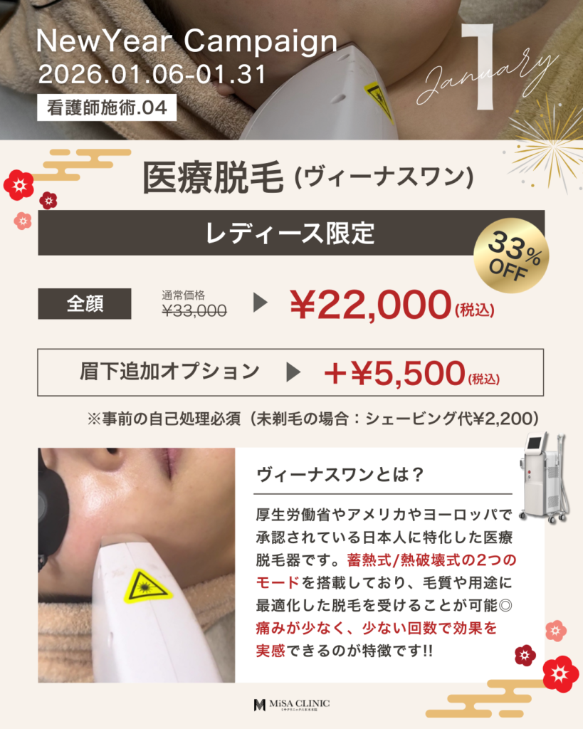 来年1月の キャンペーンのお知らせです🎍 キャンペーン枠には限りがございますので、気になる方はお早めにご予約ください。皆様のご来院をスタッフ一同心よりお待ちしております。 ◼︎ご予約方法◼︎ お電話はこちらから Web予約はこちらから LINE予約はこちらから メールご予約はこちらから