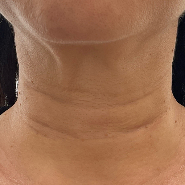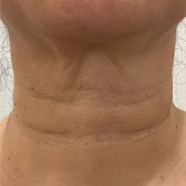 首もお顔と同様、加齢の影響でたるみます。脂肪が落ち、首を横に走る大きな段差ができていた今回の症例では、ボライトで肌のハリを改善し、脂肪を支える力を回復すると共に、FatXcoreで脂肪のボリュームを減らしました。結果として横シワがかなり改善すると共に、肌の質感を若々しくすることができました。