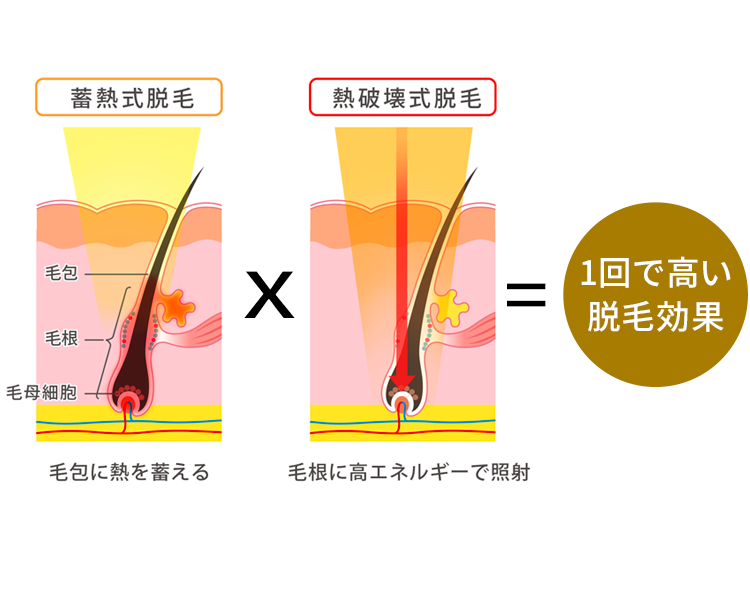 医療脱毛には「蓄熱式」と「熱破壊式」の2つの照射方法があります。