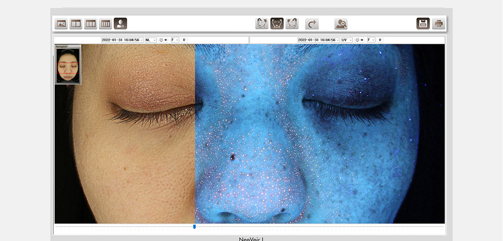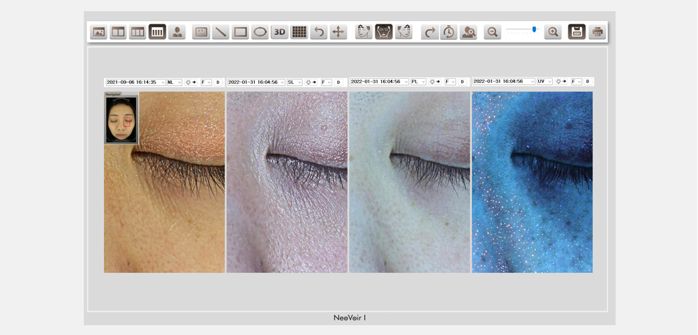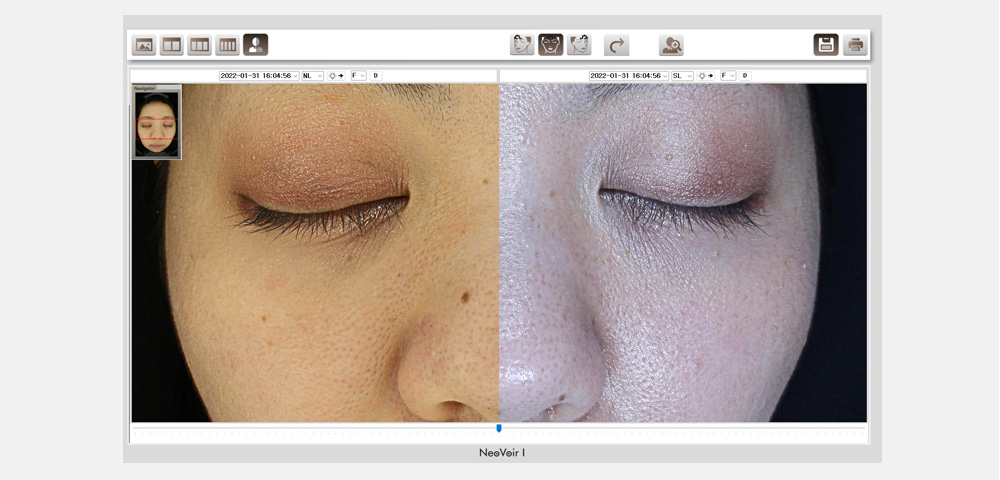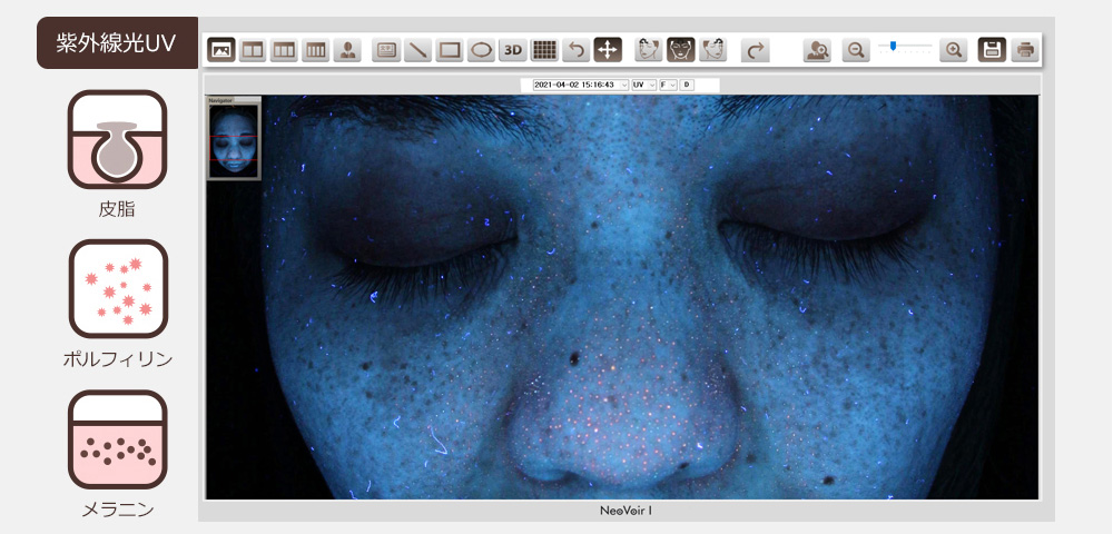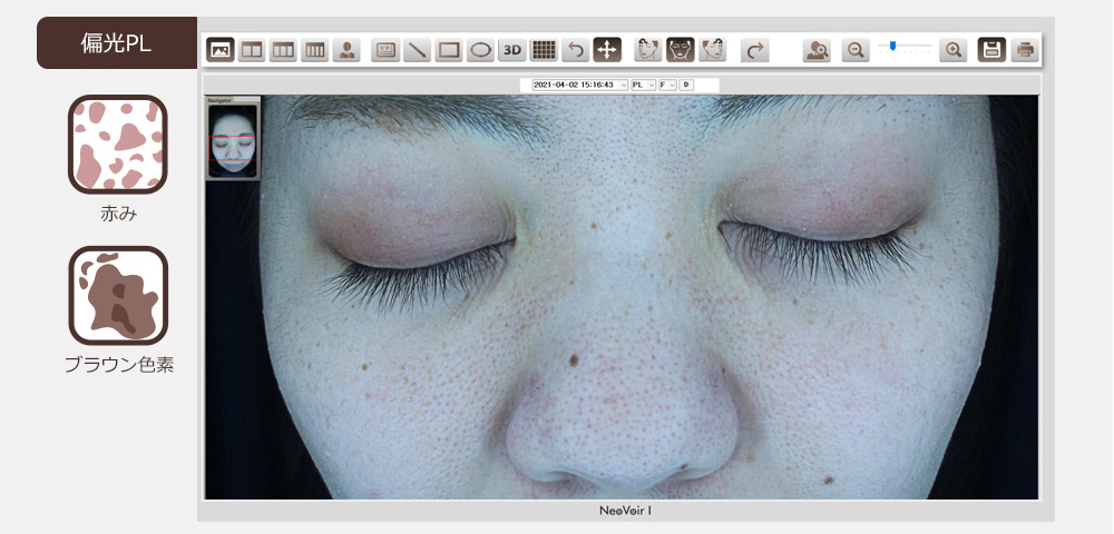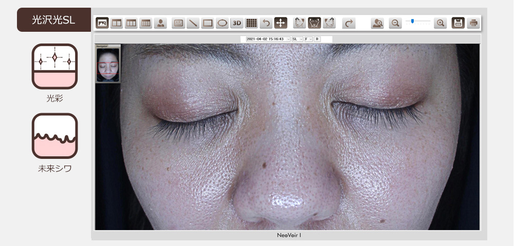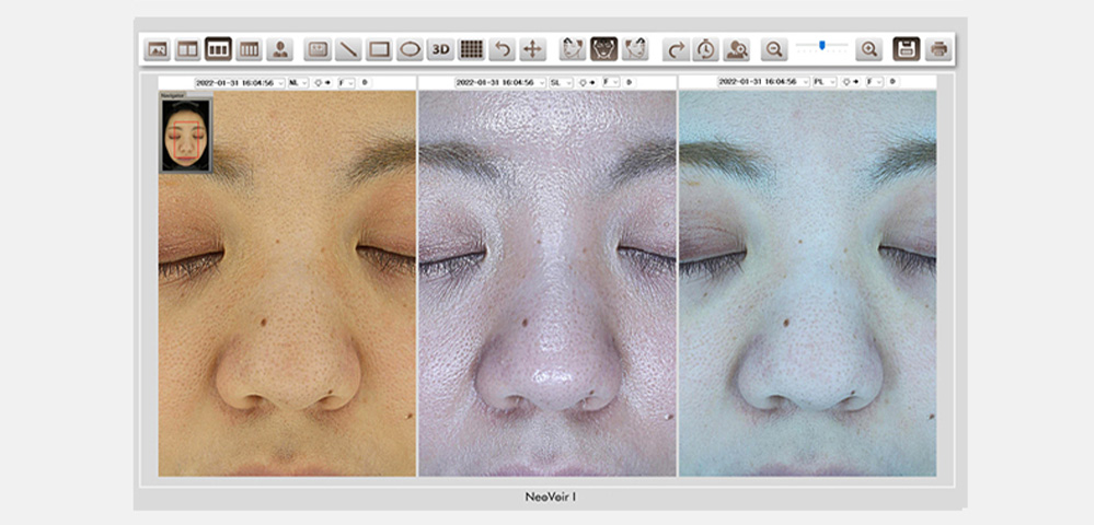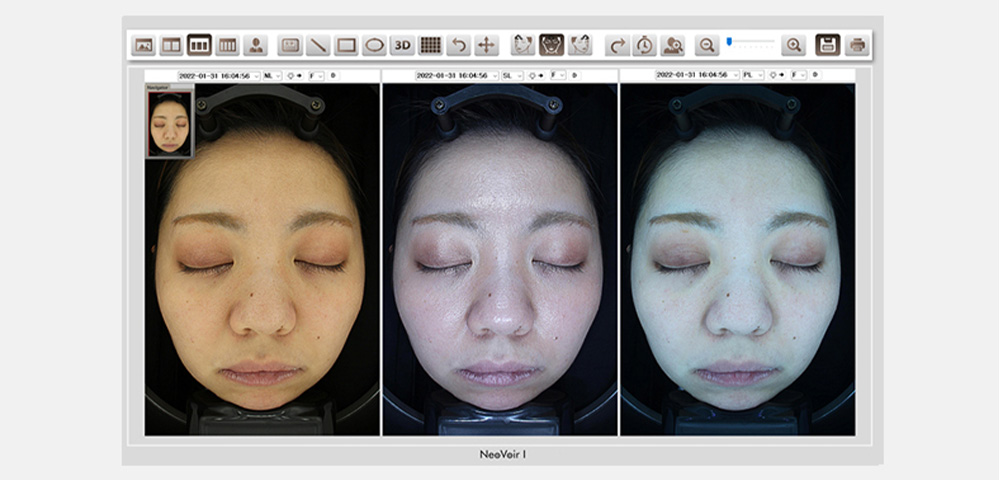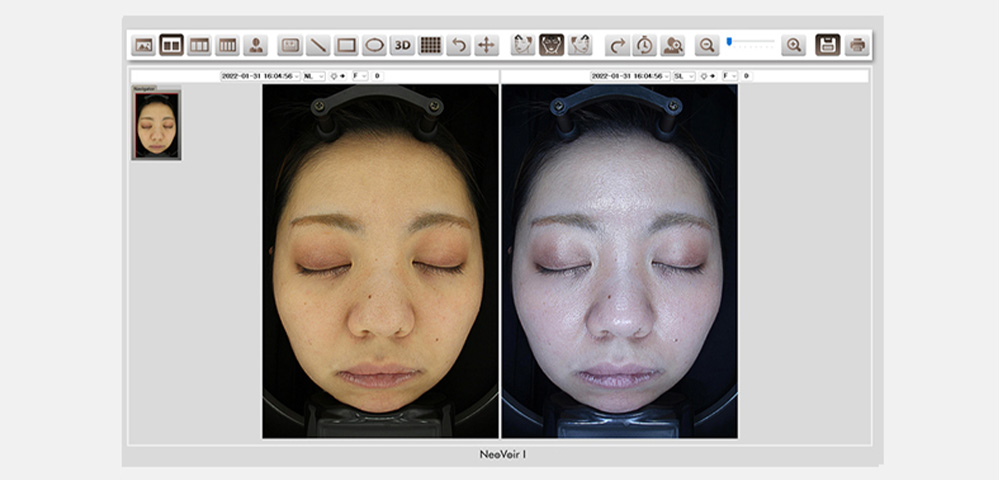 ネオヴォワールは、日本製の肌診断機で、治療前後のお肌の状態や変化を詳細に分析することができます
