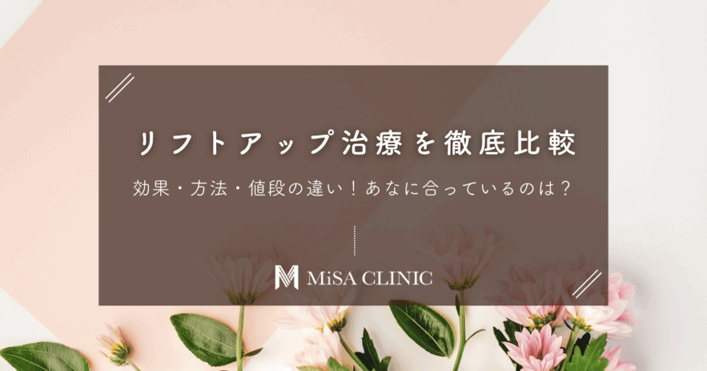 リフトアップ治療の効果、方法、値段を徹底比較。HIFU・糸リフトから切るフェイスリフトまで、あなたに合うたるみ改善法を見つけましょう。費用や持続期間、ダウンタイムや失敗しないためのクリニック選びのポイントもまとめています。 -