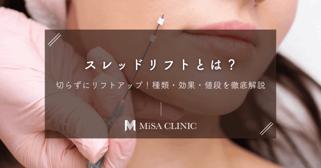スレッドリフトとは、メスを使わないリフトアップ治療法です。医療用の糸でたるみを引き上げ、ほうれい線やフェイスラインを改善します。この記事では、糸の種類や期待できる効果、値段の相場やダウンタイムを専門医が徹底解説しています。 -