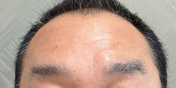 表情シワの改善にはボトックスが効果的ですが、既に刻まれてしまったシワを消すことはできません。刻まれてしまったシワを自然に埋めるにはスネコスが効果的で、今回はコンビネーションで両注入剤を注入しました。額のシワがほとんど目立たなくなったと共に、今後シワが刻まれることの予防にもなっています。